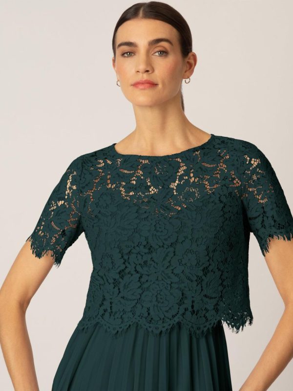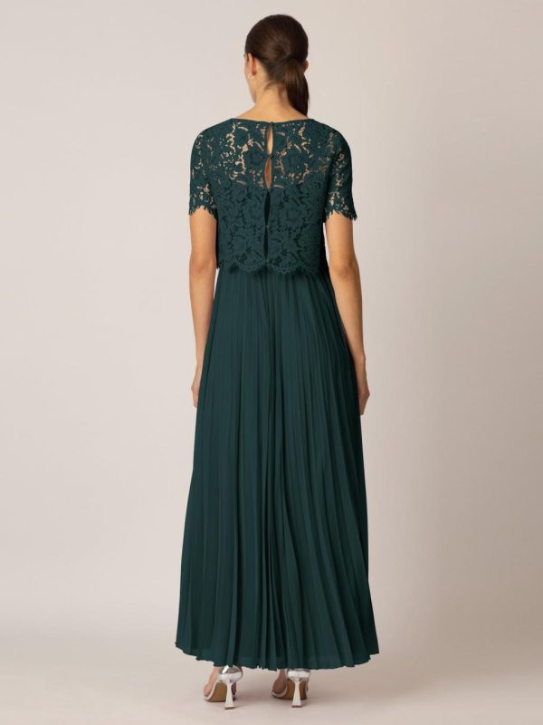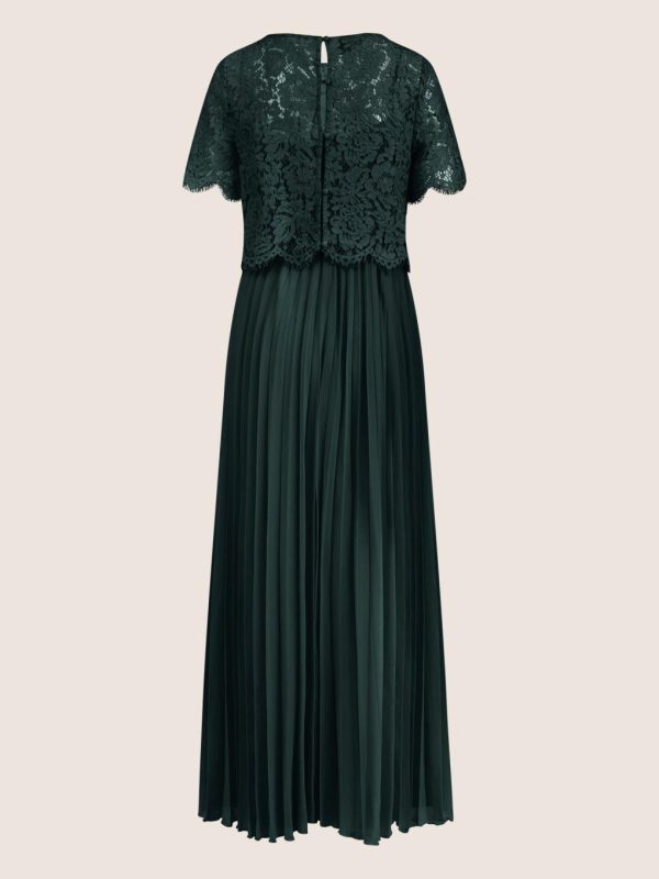 - Schmal geschnittenem Oberteil und weitem Sonnenplisseerock