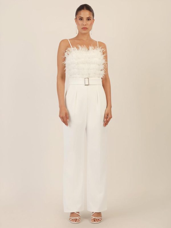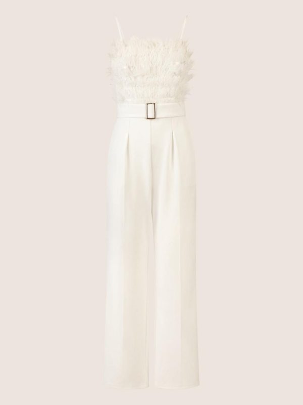 APART Fashion Abendoverall Mit Straußenfedern Verziert Creme | DAMEN OVERALLS