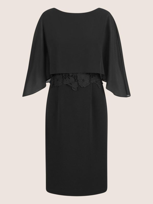 APART Fashion Kleid Mit Chiffoncape In Lagenoptik Mit Spitzenborte Schwarz | DAMEN KLEIDER
