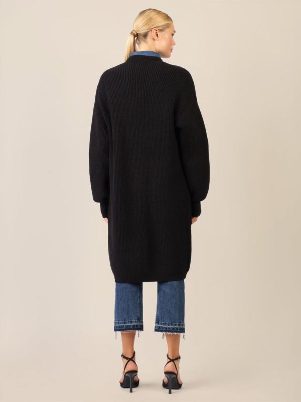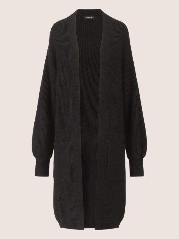 Diese lange, verschlusslose Strickjacke ist der perfekte Begleiter für entspannte und stilvolle Looks. Gefertigt aus einer weichen Viskose-Kaschmir-Mischung überzeugt sie durch ihren angenehm soften Griff. Das elegante Halbpatentmuster verleiht Struktur, während die krausgestrickte Blende an Ausschnitt und Vorderkante für dezente Akzente sorgt. Die weiten Ärmel mit schmalem Rippenbündchen und die glatt gestrickten, aufgesetzten Taschen runden das Design funktional und modern ab. Ideal für Layering an kühleren Tagen. Länge: ca. 92 cm.