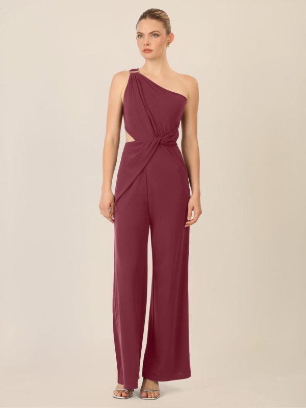 Dieser One-Shoulder-Overall bringt moderne Eleganz auf den Punkt! Gefertigt aus weicher Jerseyware, umschmeichelt er die Figur und setzt mit dem asymmetrischen Ausschnitt stilvolle Akzente. Ein goldfarbener Metallring an der rechten Schulter verleiht dem Look einen Hauch von Glamour, während kunstvolle Drapierungen an Schulter und Taille für Raffinesse sorgen. Besonders aufregend: der Cut-out über der Taille – ein echtes It-Detail! Der weit ausgestellte Beinverlauf im Marlene-Stil sorgt für einen fließenden Fall und einen femininen Auftritt. Mit seitlichem Reißverschluss und einer Seitenlänge von ca. 108 cm ist dieser Jumpsuit nicht nur stilvoll, sondern auch komfortabel. Perfekt für Abende mit Wow-Effekt!