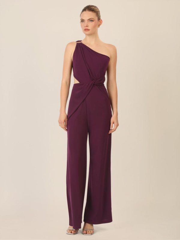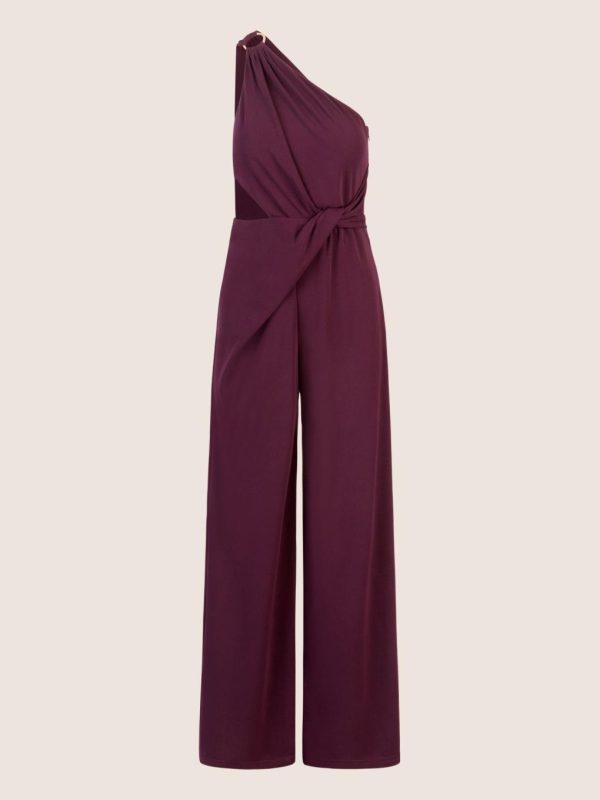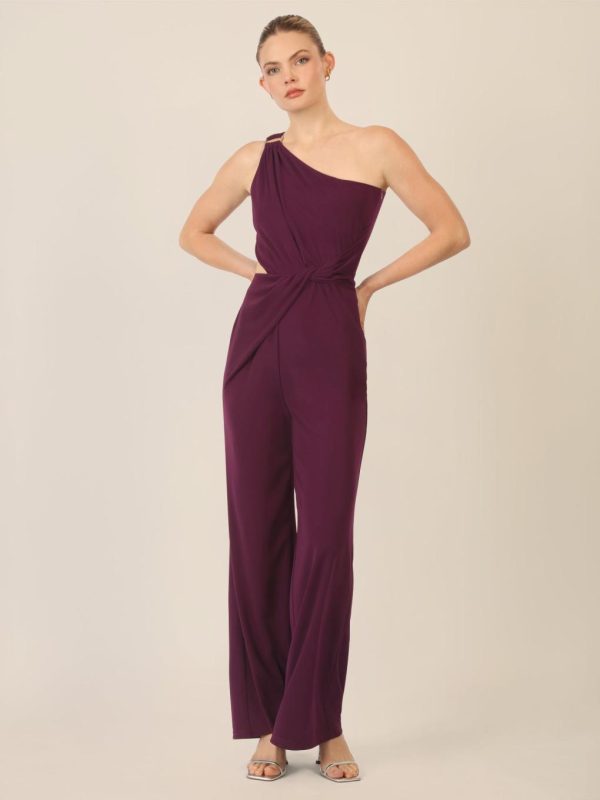 APART Fashion One-Shoulder Jerseyoverall Mit Drapierung Dunkel Lila | DAMEN OVERALLS