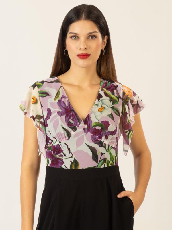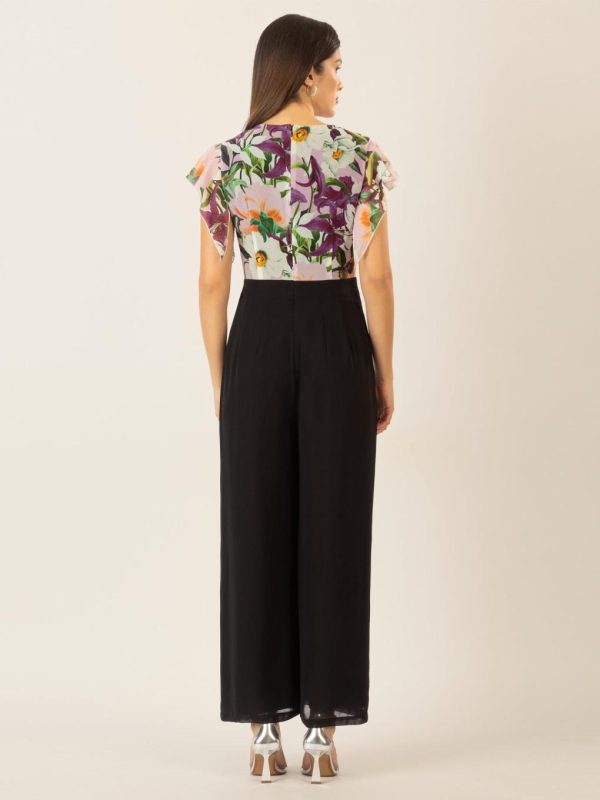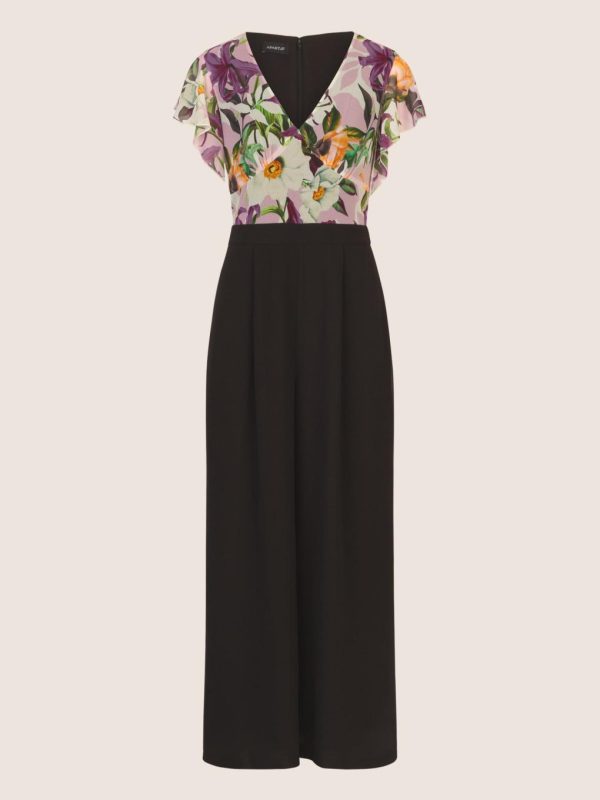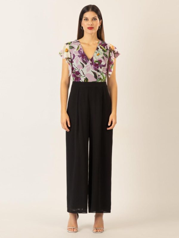 Dieser elegante Overall vereint Komfort und Stil zu einem perfekten Ensemble für besondere Anlässe. Der obere Teil besticht durch ein florales Design und eine leichte Transparenz, die durch fließende, kurze Ärmel eine feminine und luftige Note erhält. Der V-Ausschnitt sorgt für ein schmeichelhaftes Dekolleté und verleiht dem Look eine moderne Eleganz.