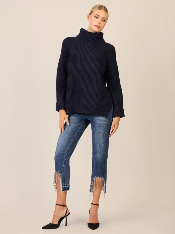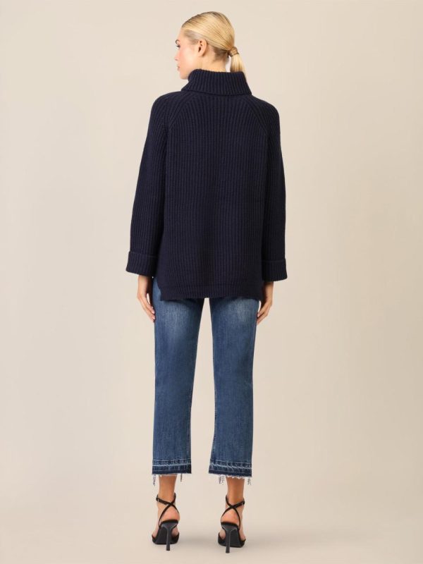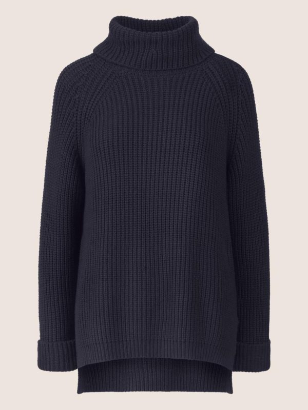 Gemütlich trifft auf luxuriös! Dieser oversized gestrickte Pullover aus einer soften Viskose-Kaschmir-Mischung ist das perfekte Fashion-Piece für stilvolle Wohlfühlmomente. Der weite, runde Ausschnitt wird von einem hohen, großzügigen Rollkragen begleitet – super soft und super trendy. Lange Raglanärmel mit liebevollen fully-fashioned Details und breitem Aufschlag bringen modische Lässigkeit ins Spiel. Die gerade, etwas verkürzte Front harmoniert mit der verlängerten Rückenpartie und den tiefen Seitenschlitzen – ein modernes Update für klassische Strickmode. Hinten ca. 74 cm lang und gestrickt im angesagten Halbpatent – dieser Pullover ist dein Must-have für entspannte Tage mit Style-Garantie!
