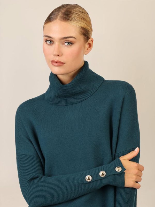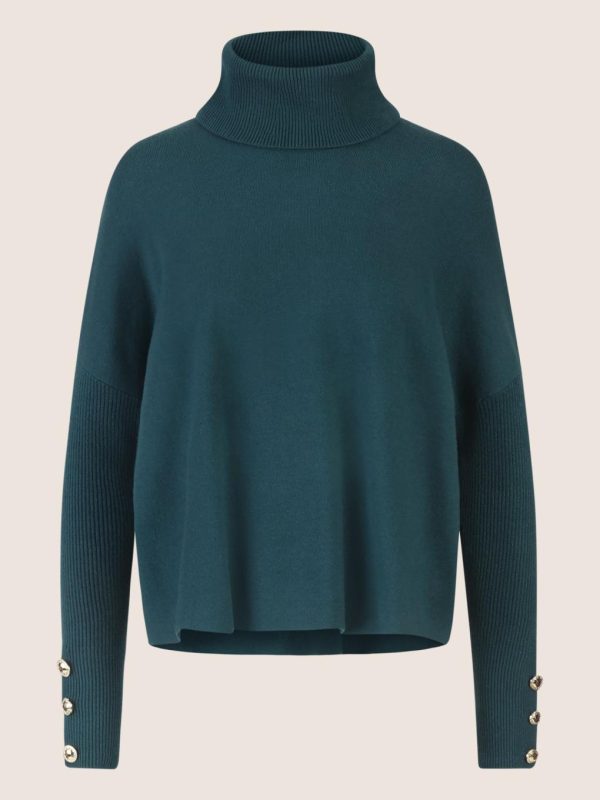 APART Fashion Oversized Pullover Mit Rollkragen Und Schmuckknöpfen Dunkelgrün | DAMEN OBERTEILE