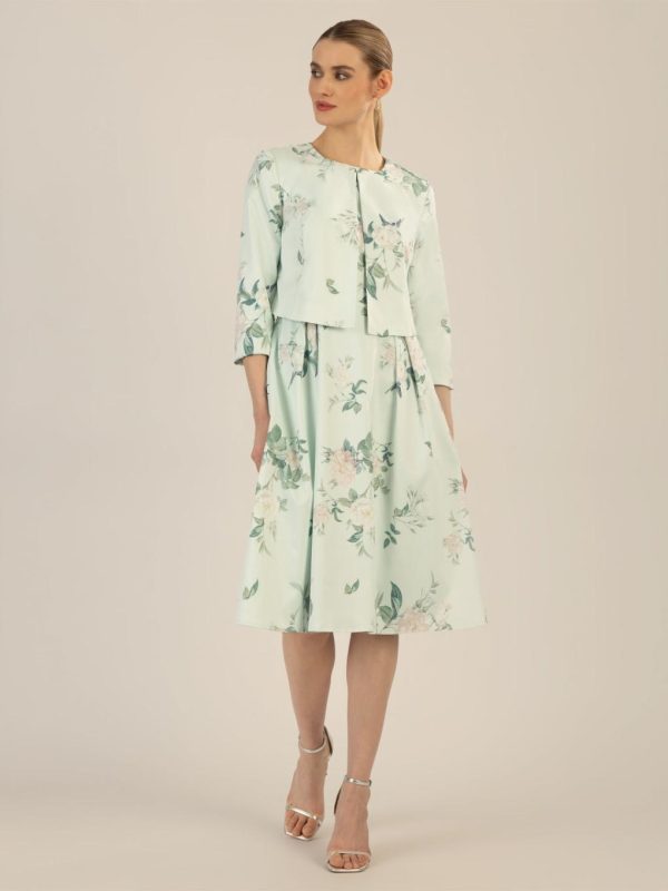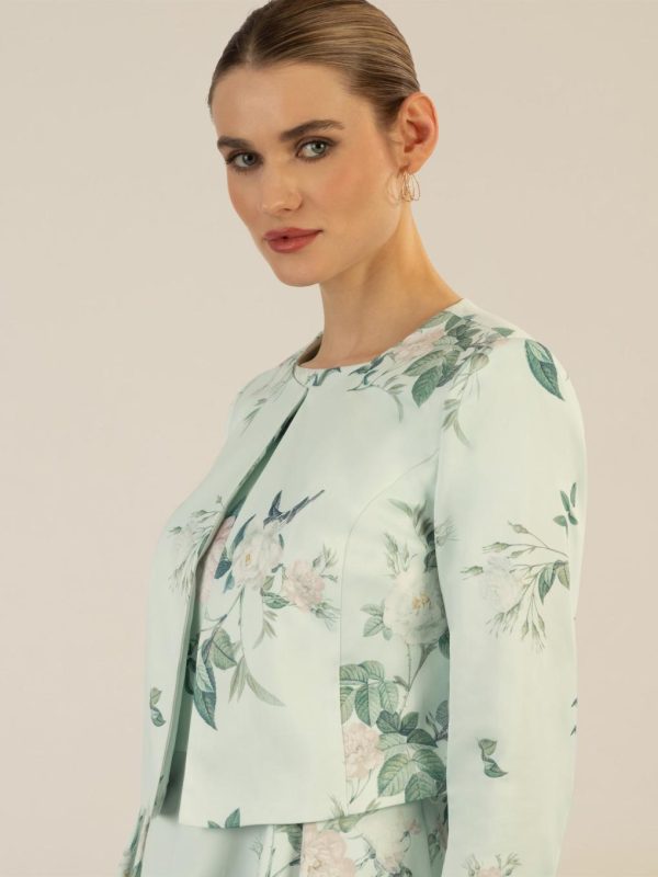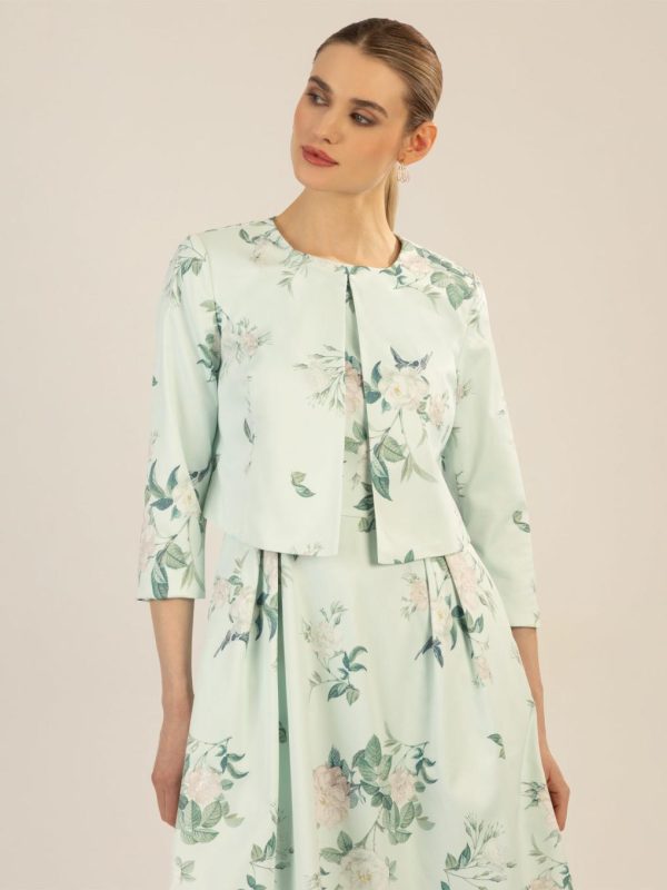 Eleganter Satinbolero mit klassischem Rundhalsausschnitt und langen Ärmeln. Die vordere, offene Schnittführung unterstreicht den edlen Look. Die geschmeidige Satin-Textur verleiht dem Design einen luxuriösen Glanz und macht es zum idealen Begleiter für besondere Anlässe.