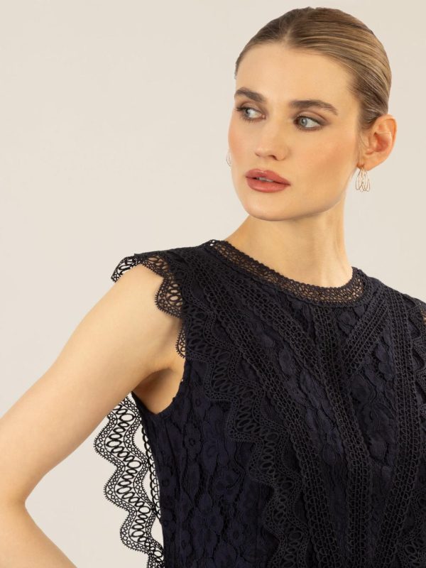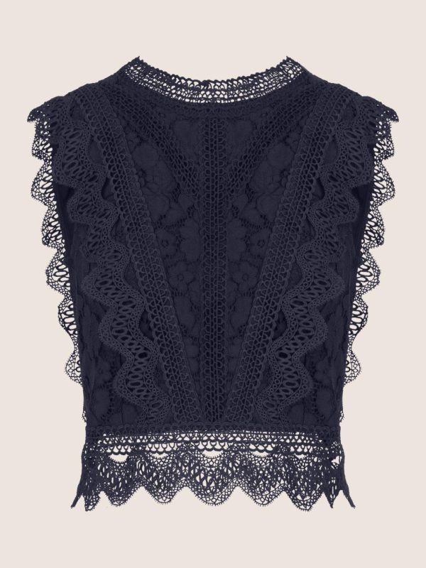 APART Fashion Spitzentop Aus Einer Plastischen Spitze Und Mit Spitzenband Verziert Nachtblau | DAMEN OBERTEILE