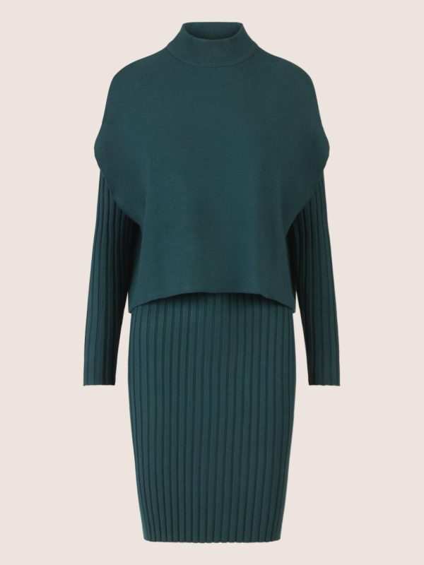 Dieses edle Strick-Set vereint cozy Chic mit angesagtem Layering-Look! Das Rippenstrickkleid aus einer soften Viskose-Kaschmir-Mischung schmiegt sich sanft an die Figur und punktet mit klassischem Rundhalsausschnitt und schmalen Ärmeln. Darüber getragen: ein hüftlanger, ärmelloser Pullunder in angesagter Cape-Form aus feinem Milano-Strick mit hohem Turtle-Neck – stylisch und warm zugleich! Ein It-Piece für moderne Frauen, die Komfort und Raffinesse lieben. Länge Kleid ca. 98 cm, Cape ca. 52 cm.