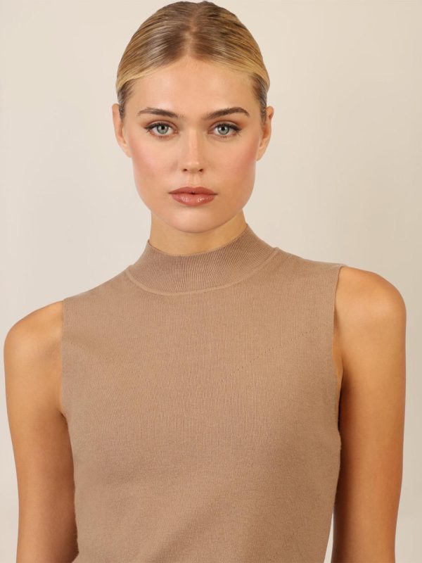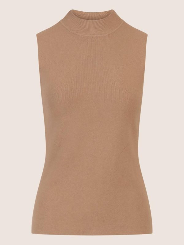 Dieses ärmellose, taillierte Stricktop in Full-Needle-Technik ist ein echtes It-Piece für den modernen Look. Der runde Ausschnitt geht elegant in einen hohen Stehkragen über und verleiht dem Design eine cleane, minimalistische Note. Highlight ist das eingestrickte Lochmuster im Vorderteil in angesagter V-Form, das dezente Akzente setzt. Die Armausschnitte sind fully fashioned gearbeitet – für eine perfekte Passform. Länge: ca. 60 cm.